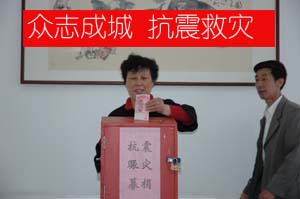 5月12日,四川汶川發生7.8級大地震。消息傳來后,工貿公司全體員工非常關注,災情牽動著每一個人的心。14日上午,公司領導班子研究后,決定結合全市正在開展的“博愛在行動、人道萬人捐”活動發出倡議:一是倡議全體員工每人捐助一筆善款賑災;二是鼓勵身體健康的年輕同志自愿獻血。倡議發出后,公司領導帶頭捐款,各部門員工紛紛慷慨解囊,短短半個小時,就收到了40名員工捐款合計7600元,有8名同志報名參與集體獻血。大家紛紛表達了為災區人民獻出一份愛心、一點力量的心意,同時表示將立足本崗、勤奮工作,以圓滿完成本職工作的實際行動,支援抗震救災。